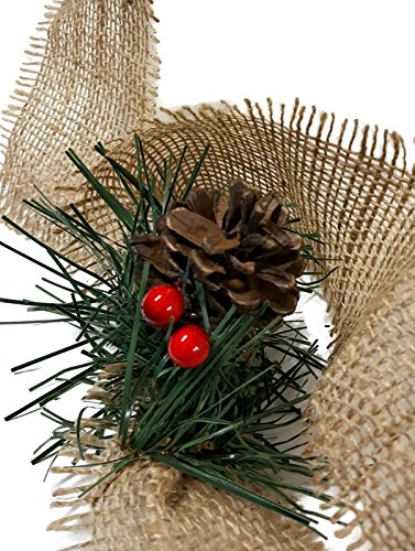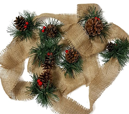 - 8ft burlap garland is a handcrafted delight, a spin off traditional greenery garlands but with a new fun burlap twist. Decorated with greenery, pinecones and berries, this garland will be right at home in any room, and will easily become your favorite garland!