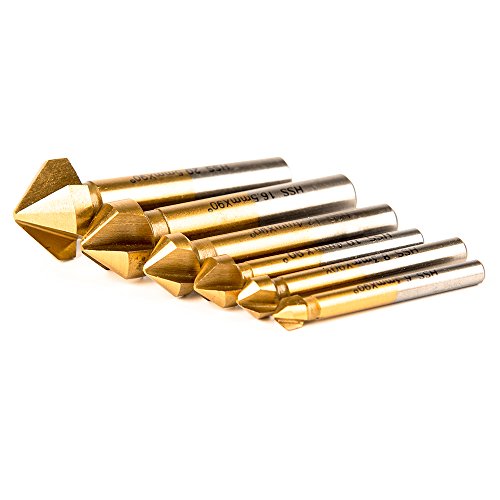 Wazaza 6pcs HSS Countersink Drill Bit Set 90 Degree 3 Flute Titanium Chamfer Cutter Mill Drill Bits