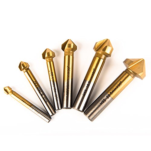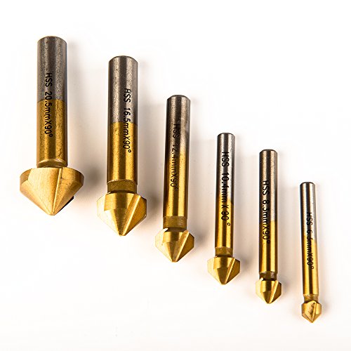 - The set of 6 3-flute, 90 degrees countersink drill bits is suitable for processing metal and some non-metallic materials, such as carbon steel, steel, thin iron plate, insulation board, PVC board, aluminum, soft and hard wood, plastic and so on.