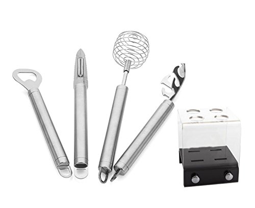 -. Title : Kitchen Cooking Utensils Set - Kindor 5 Piece Premium Tool and Gadget Sets Stainless Steel peeling knife+whisk+bottle opener+storage bracket