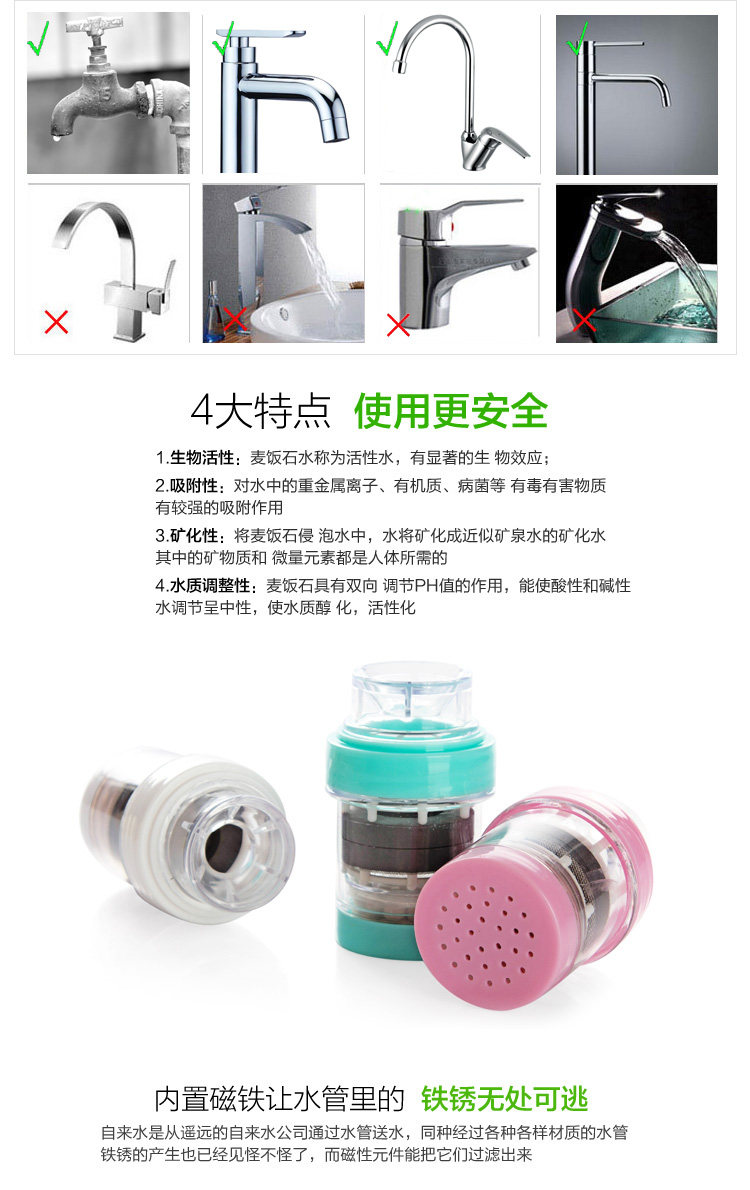 品名:麦饭石磁化家用厨房保健自来水过滤器 K5259