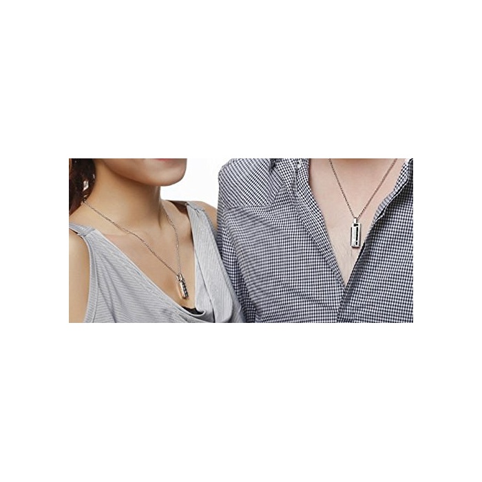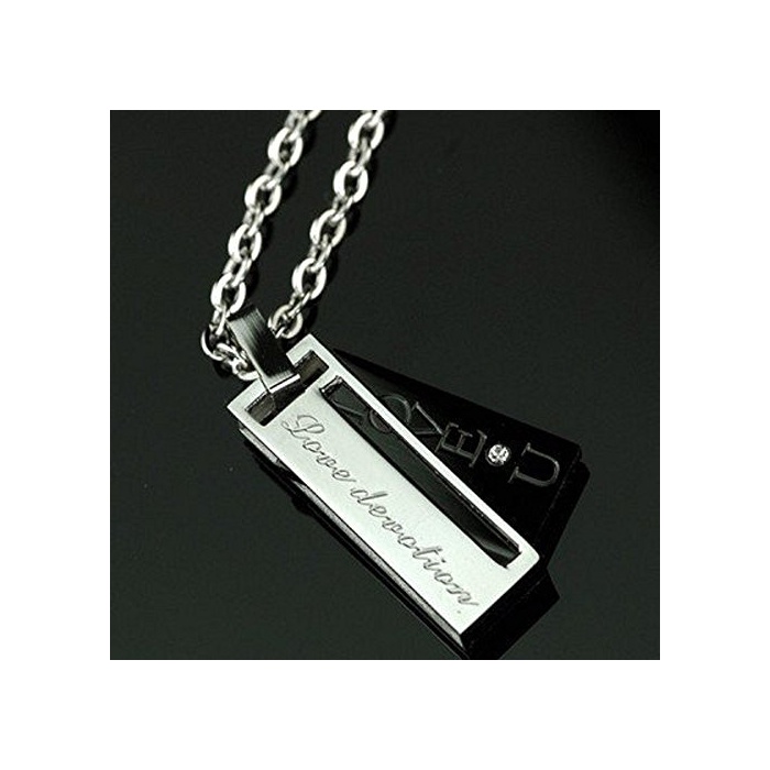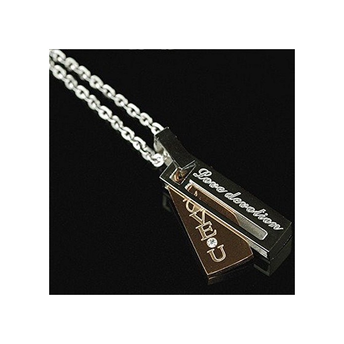 Giselle 스테인레스제 페어 넥크리스 LOVE-U (맨즈 [블랙] &레이디스[핑크 골드]) 2점 세트