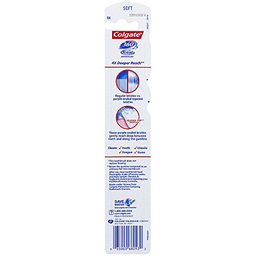 -. Title : Colgate 360 Total Advanced Floss-Tip Bristle Toothbrush, Full Head Soft