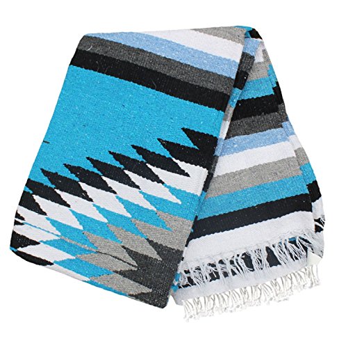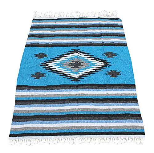 Del Mex Woven Mexican Southwest Large Center Diamond Blanket (Turquoise/Blue)