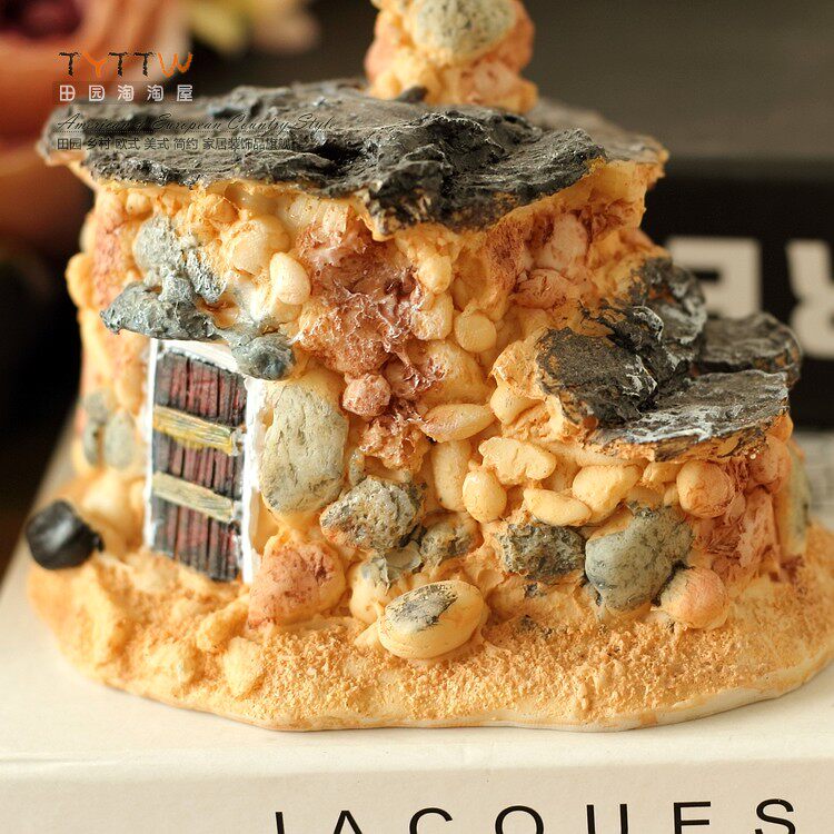 远古时代石头小房屋 海边小房子 装饰树脂摆件工艺摆设??
