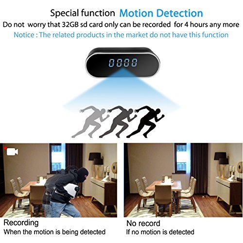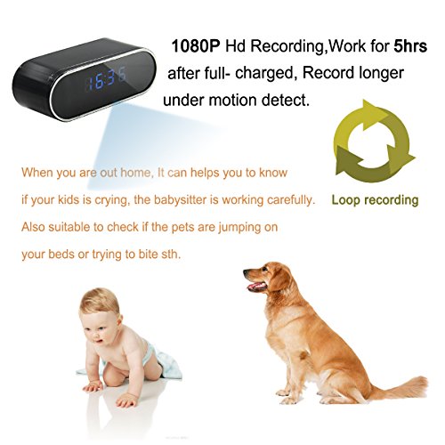 A mini camera hidden in the regular clock; discreet and covert, nobody will suspect is as a hidden camera; video resolution is adjustable and up to 1080P tells you clearly what is going on; simply set the clock time with only 2 buttons