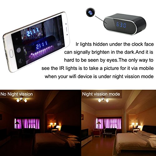 Daretang WiFi Hidden Camera Clock Upgraded Wireless Spy Camera Full HD 1080P Motion Detection Activated Alarm App Realtime Video Remotely Monitoring for Home Security Nanny Cam