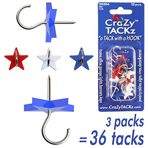 3 packs of Stars = 36 tacks. NEW INVENTION (2 FOR 1): When you combine a pushpin /thumbtack with a cuphook, voila, you get CraZy TACKz! Get Yours Today. Also makes a great gift for teachers, co-workers & your kids. "Got CraZy?...Tackz!"