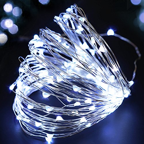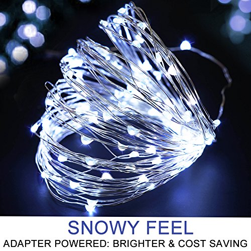 - 33' FT LONG STRING OF 100 STARRY MINI LED LIGHTS, COOL WHITE GLOW with SILVERY WIRE, SNOWY - Comes with 100 LED delicate mini bulbs - Cool white light looks like falling snow; Metallic slivery wire can be bended into any shape, a simple and elegant home decor in the day - Twine around plants or roof, add crystal and artistic ambiance in any occasion - Light up automatically with a timer at night - Satisfy your creativity, make your garden and home outstanding.