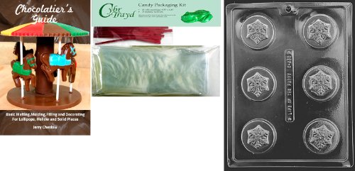 Cybrtrayd Snowflake Cookie Chocolate Mold with Chocolatier's Bundle of 25 Cello Bags, 25 Red Twist Ties and Chocolatier's Guide