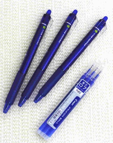 Pilot FriXion Ball Knock Retractable Erasable Gel Ink Pens,Fine Point, - 0.7mm - Blue Ink- Value set of 3 & 3 Gel Ink Pen Refill Pack