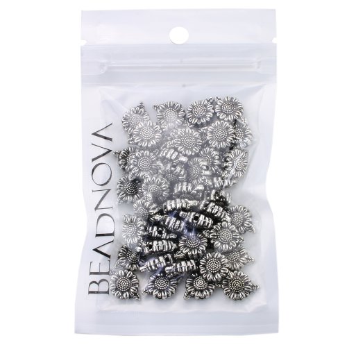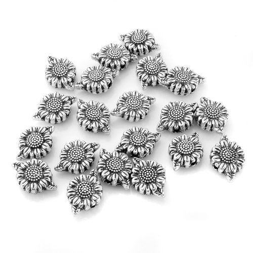BEADNOVA 50pcs Tibetan Silver Cute Sunflower Flower Charm Bead Spacers for Jewelry Making Findings