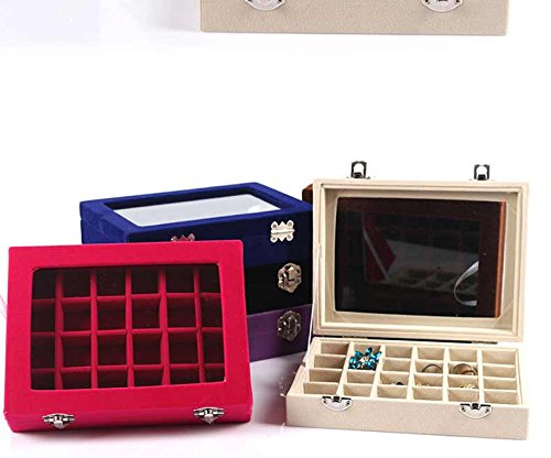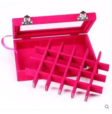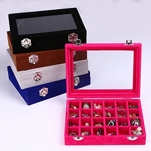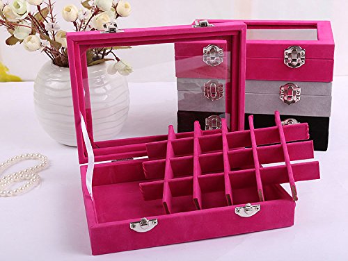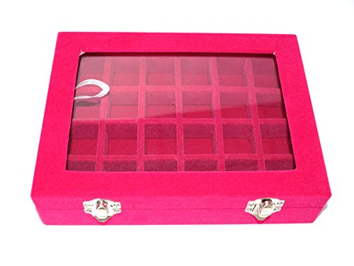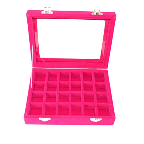 Life VC Hot Pink 24 Grid Velvet Glass Jewelry Ring Display Organiser Box Tray Holder Earrings Storage Case