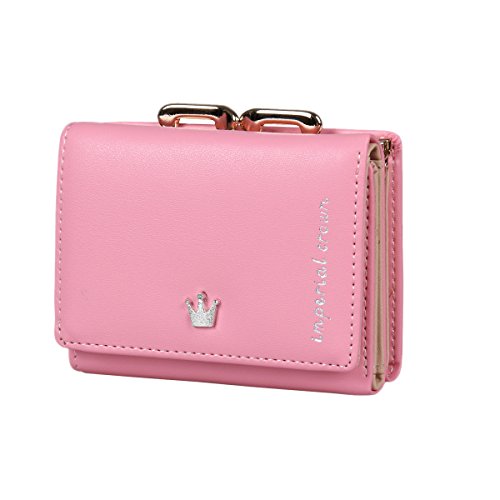 -. Title : Damara Women Crown Kiss-lock Trifold Small PU Coin Purse