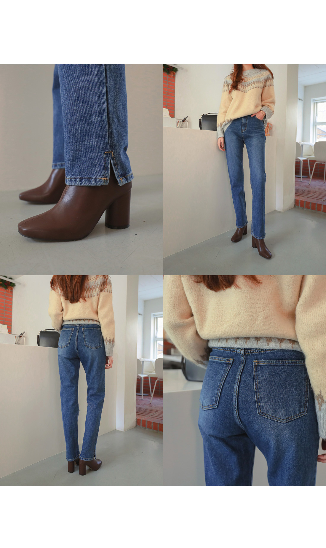 MD COMMENT 클래식한 느낌의 일자라인 데님진을 소개해드려요-하이웨스트 디자인에일자로 떨어지는 롱한 기장감으로 다리가 길어보이는 효과를 주구요 코튼소재로 변형없이 오랜시간처음느낌대로 입을 수 있구요 도톰한 기모안감으로 보온성을 챙겨주면서 밑단의 옆트임이 포인트가 되는 아이템이에요 롱한 기장이 부담스러우신 분들은 모델처럼 롤업해서 연출해 주시면 되구요 캐주얼룩에도 잘어울리고 트렌디한 유니크룩에도 잘 어울리는 디자인으로 스니커즈와 함께 코디 햇을때는 밑단을 내려서 매칭해주시면 빈티지한 느낌을 느끼 실 수 있어요-!COLOR/SIZE 중청S,M,LMODEL FITTING 중청/M