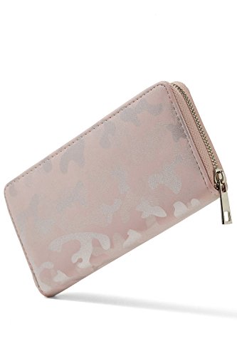 MAXIMUM PROTECTION AND EASY ACCESS TO YOUR ESSENTIALS. The outer part of the wallet is made of soft faux suede and embellished with shimmering abstract prints. It is water-resistant and durable enough for everyday use. The interior is crafted from strong synthetic materials. A sturdy zip-around closure gives you easy access to the contents. Yet your essentials won't fall out even when your purse is stuffed to a brim.