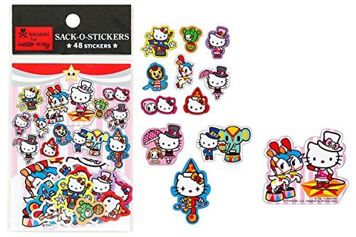 Set includes 12 circus-themed designs (a total of 48 sticker flakes in all) starring Hello Kitty and her Tokidoki friends!