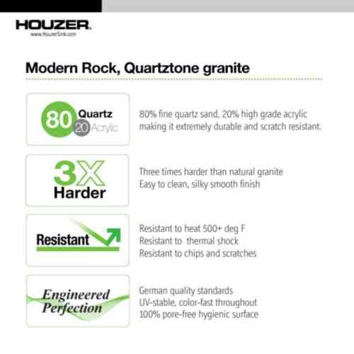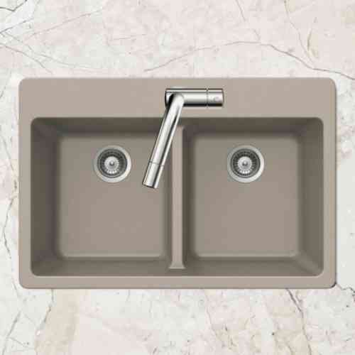 Houzer M200 Taupe M-200 Quartztone Series Granite Top Mount 50/50 Double Bowl Kitchen Sink