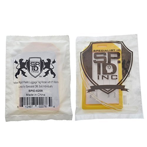 Yellow Rigid Plastic Luggage Tag Holder with 6" Worm Loop by Specialist ID, Sold Individually