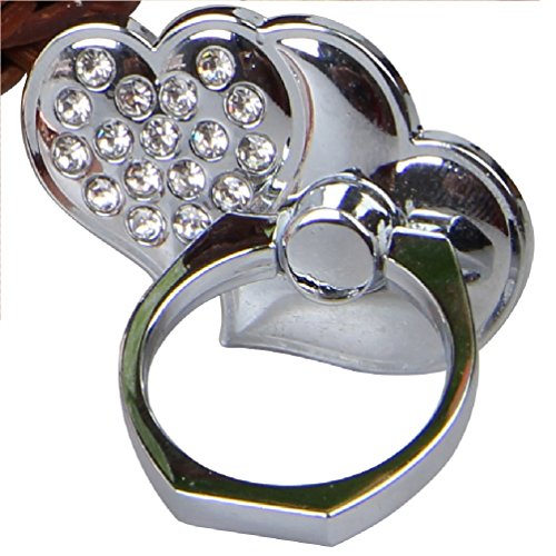 Phone Ring - Metal Heart Love V2 - 360 Degree Rotation Full Metal Universal Ring Grip/Stand Holder for Any Smartphones and Device with Base Mounts (Silver)