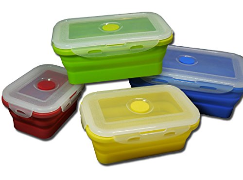 Food Storage Containers Premium Box Set (4 Different Sizes) - Collapsible, Foldable, Children and Baby Safe. Super Versatile - Food Prep / Storage, Lunch / Bento Box, Freezing, Microwave