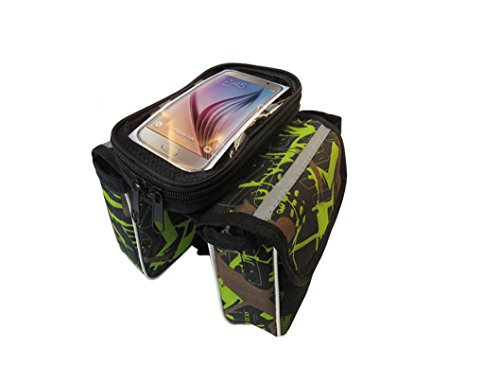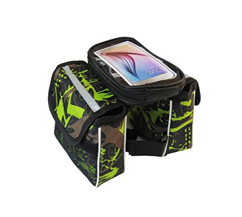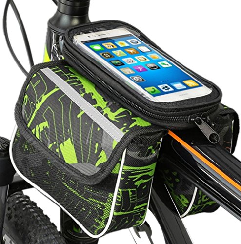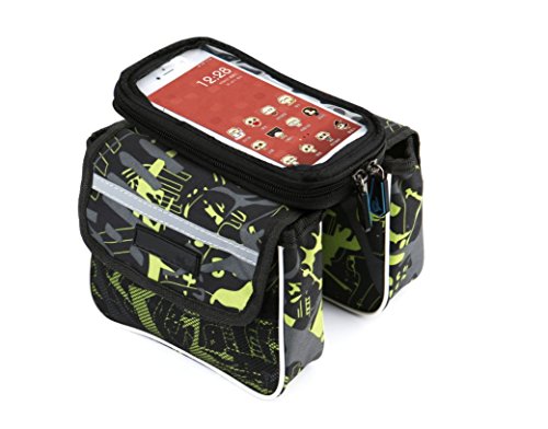 Cocobuy Screen Touchable Cycling Bike Bicycle Front Bag Top Tube Frame Bag Double Pouch for Cellphone (Green)