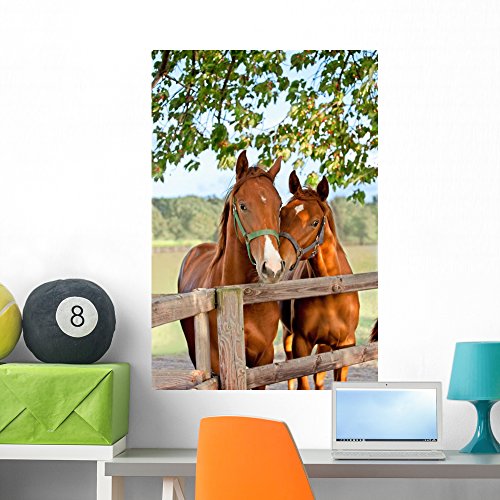 Two Horses Paddock Wall Mural by Wallmonkeys Peel and Stick Graphic (36 in H x 24 in W) WM202626