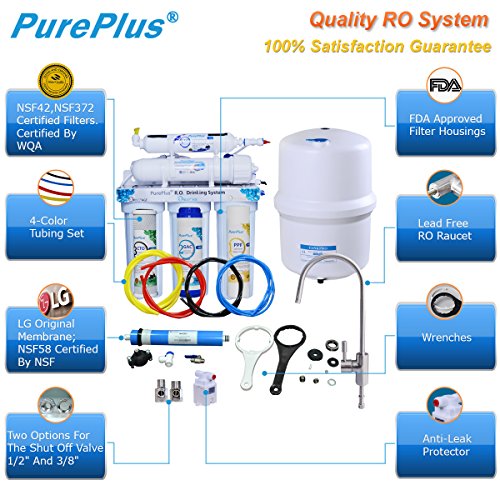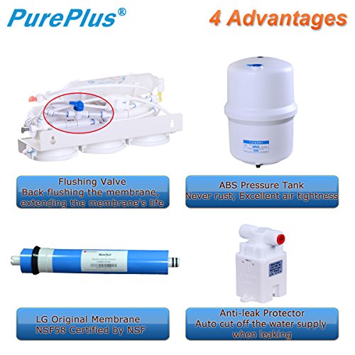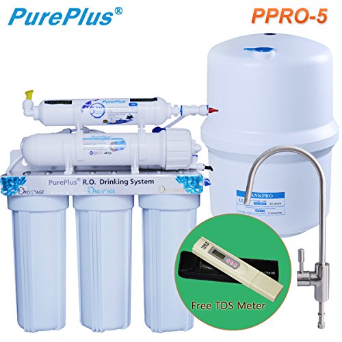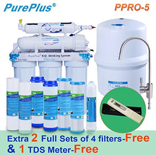 PurePlus Undersink Reverse Osmosis Drinking Water Filtration System (5 Stage),Extra 2 full sets of 4 filters & 1 TDS Meter for free