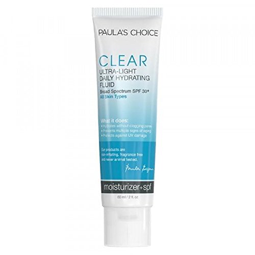 Paula's Choice--CLEAR Ultra-Light Daily Fluid SPF 30+ Anti-Aging Moisturizer is a daytime, sun-protecting fluid that softens the look of enlarged pores. Plant-derived antioxidants and hydrators help smooth and calm skin, minimizing flaking and dryness.