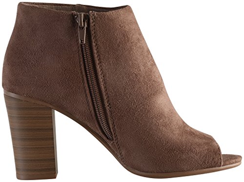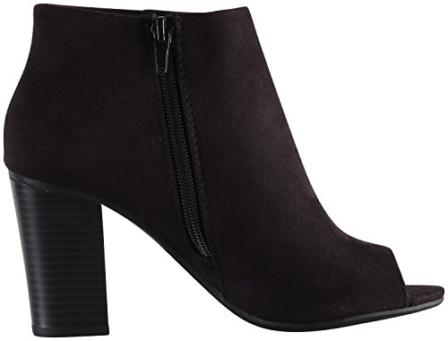 Binding : Apparel Product Description Delicious Women's "Louisa" peep toe sueded booties are sure to be your favorite fall/winter accessory! Comfy and stylish, these booties feature peep toe front with easy inside zip closure. Stacked 3" heel and .25" platform. Imported. 0