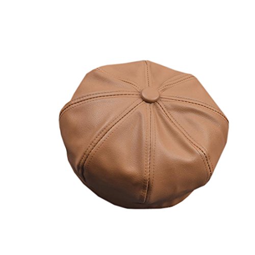 (ACVIP)/Accessories/Hats/DIRECT FROM USA/ACVIP Women's Solid Color PU Leather Beret Painter Hat Octagonal Cap