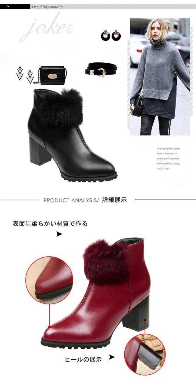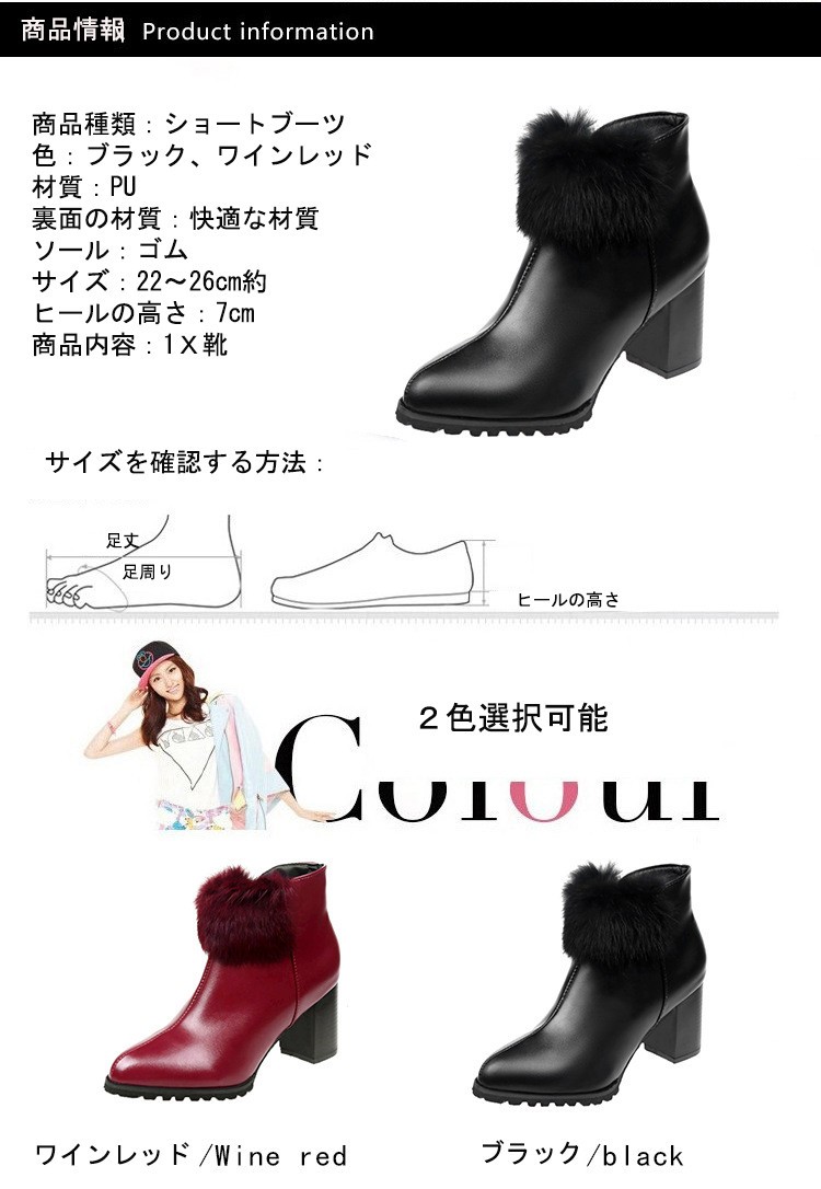 商品種類:ショートブーツ色:ブラック、ワインレッド材質:PU裏面の材質:快適な材質ソール:ゴムサイズ:22~26cm約ヒールの高さ:7cmサイズ:22.5~24.5cm約商品内容:1x靴サイズ:34:22cm 35:22.5cm 36:23cm 37:23.5cm 38:24cm 39:24.5cm 40:25cmショートブーツレディース ヒール 女性のアンクルブーツ シューズ ファスナー式靴 秋冬物 シンプル くつレディース用のアンクルブーツが登場ハイヒールの靴なので、美脚ですカラーもシルエットもとても組み合わせしやすくて、どんな場合にも使える上品な一足