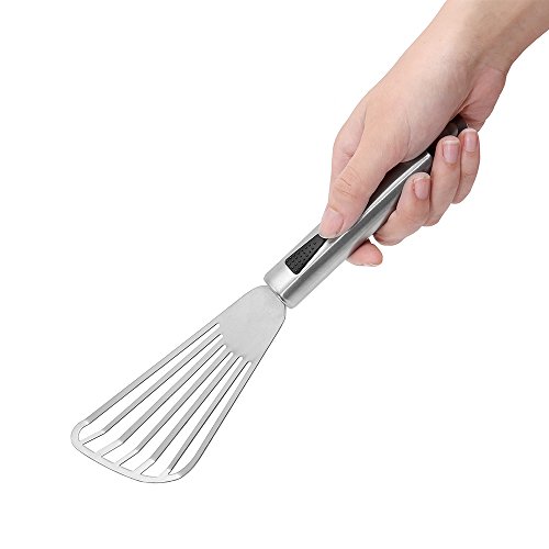 Slotted Spatula, adier-life Kitchen Stainless Steel Non-Stick Fish Turner and Spatulas with Sturdy Handle for Multi-Use Cookware (silver)