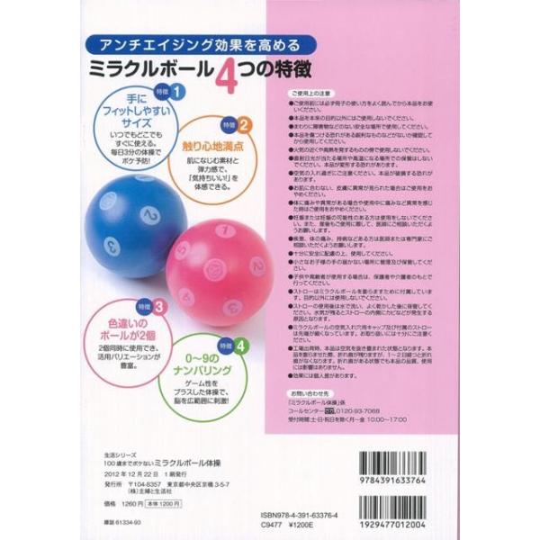 【商品基本情報】 商品名称:100歳までボケないミラクルボール体操 著者/出版社:白澤 卓二/白澤 卓二 初版発行日:2012/12/22 サイズ:B5判 ページ数:32 ISBN/JAN:9784391633764/4528189334687