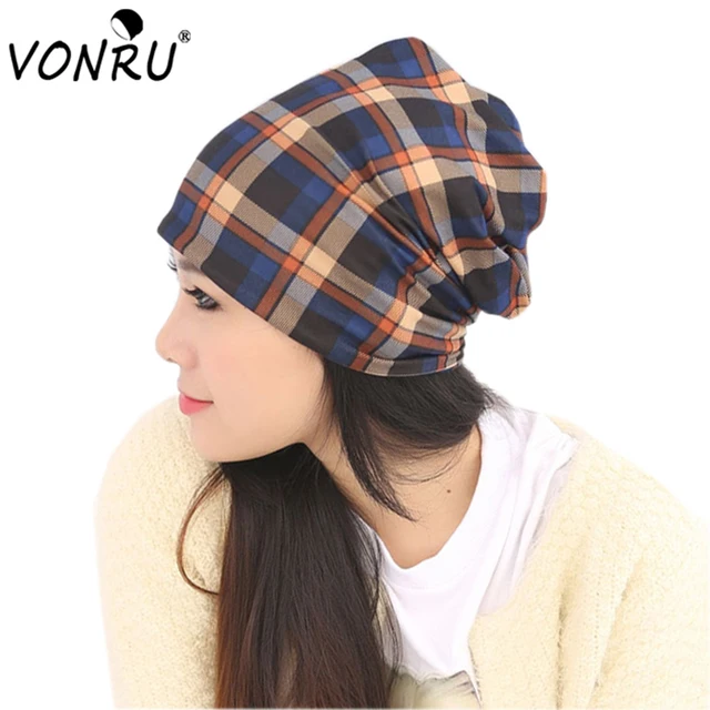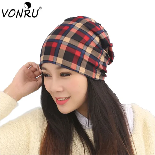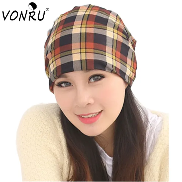 | [해외]남녀 격자 무늬 후드 스카프 모자 여성 여자 겨울 모자 스카프 보닛 Echarpe 남성 코튼 Skully 캡 여성 비니 M0325 |