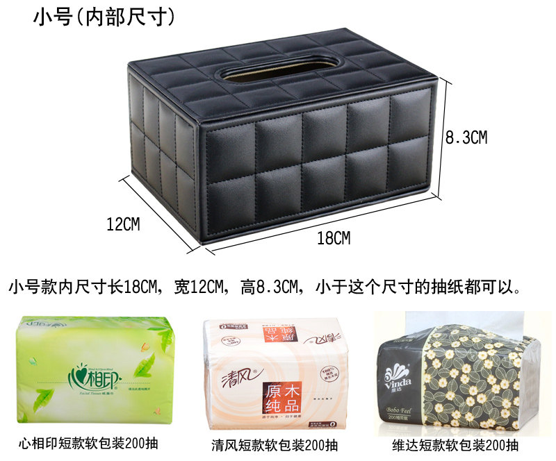 主图为大号黑色羊皮纹,一般放硬盒包装纸巾。细节图如下: