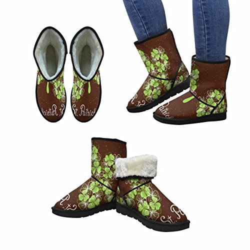 (InterestPrint)/Women's/Boots/DIRECT FROM USA/InterestPrint Women's Snow Boots ST.Patrick's Day Artistic Design With Three Leaf Clover Unique...