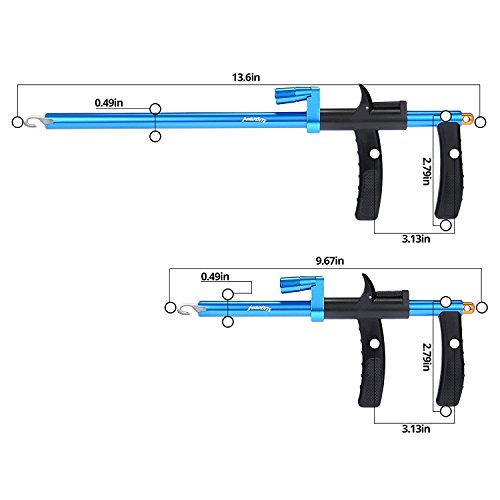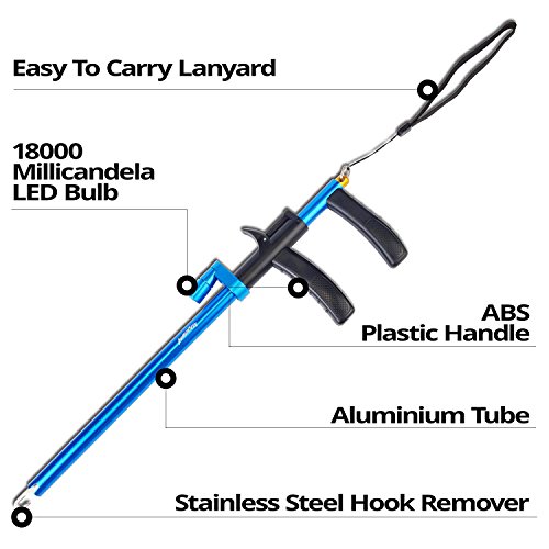 -. Feature : POWERFUL – ステンレスジョーとアルミのボディーは強度と軽量を兼ね備えています。 / ULTRA BRIGHT – 最も暗い夜にも18,000 LED電球が魚のフック外し作業を照らします。簡単なひねりでオン/オフします。漁師と魚にとって安全です。キャッチとクイックリリースを支援します。一般的なサイズでLR41バッテリー付です。 / ERGONOMIC – プラスチックハンドルは持ちやすくてあなたの手によくフィットし、フックを簡単に片手で外すことができます。 / CORROSION RESISTANT - 様々な色のハードアルマイトアルミニウムは、淡水または塩水のフック外しとしてご使用いただけます。 / TWO SIZES - 34.5cmと24.5cmの二つサイズ。サメ、ブルーフィッシュ、ムスキー、パイ、ワニ、ガチョウ、バラクーダ、サバ、ワフなどの釣りには、より長いサイズが大好きです。短いサイズはコンパクトで持ち運びに便利です。どちらのサイズでも、闇の魚のフックをはるかに簡単かつ安全に外すことができます。しかし、これらの魚にとっては、より長いサイズがより優れています。