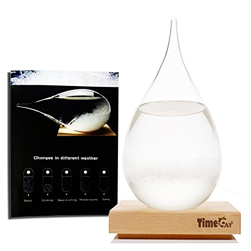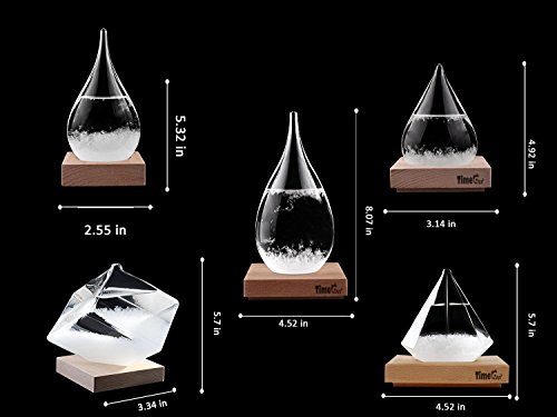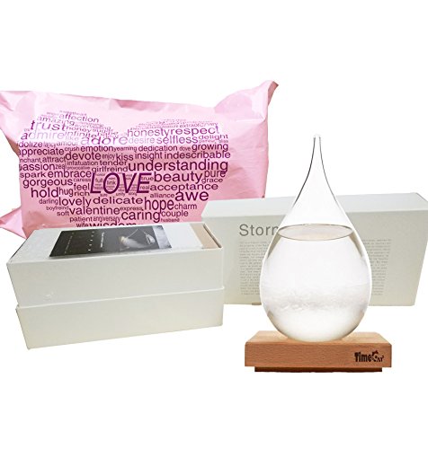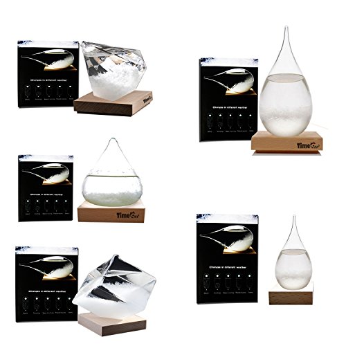 - Elegant gift box packaging Unique and unusual gift:The appearance of the liquid transforming from clear to cloudy to crystal flakes .The cool new and modern Storm Glass is a natural way to forecast the weather. While it can't ever be as accurate or reliable as a barometer or actual meteorological forecast, the patterns made are gorgeous and makes for a stunning decoration on any desk and dining table.