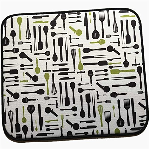 -. Title : M-s Cloth Microfiber 16 by 18-Inch Microfiber Dish Drying Mat,Black knife and fork