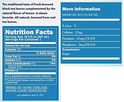 -. Feature : Lipton Pure Leaf Brewed Tea with Lemon - 12 bottle of 18.5 oz / All Natural Fresh Brewed Taste / No Preservatives, No added Colors / Fresh brewed Black tea leaves with the natural flavor or lemon