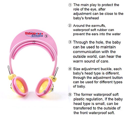 Children Earmuff Shampoo Bath Bathing Shower Cap Hat Wash Hair Shield for Baby Boys Girls (pink)