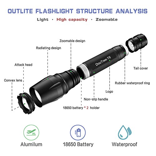 LED Flashlight , DOUMI 2018 12000 Lumen Water Resistant 18650 Torch Tactical Flashlight