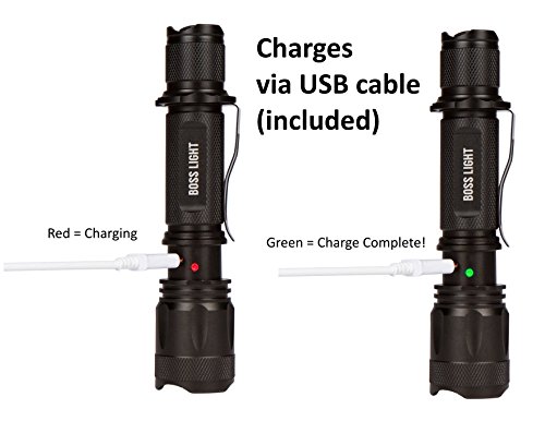 BOSS LIGHT Tactical Flashlight USB Rechargeable Zoomable LED XM-L2
