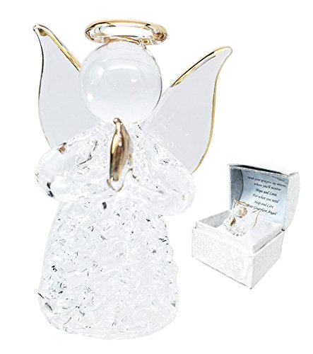 Beautiful Inspirational Handblown Glass Art Prayer Guardian Angel Ornament Figurine Collectible In Window Gift Box For Children Teens Loved Ones Encouragement Present