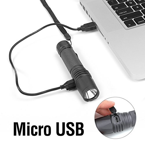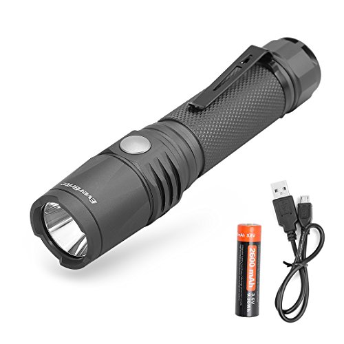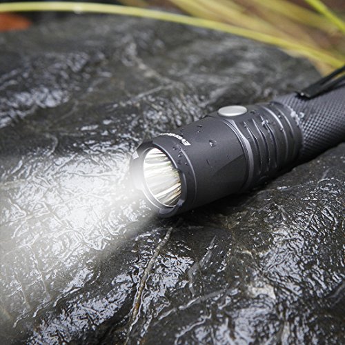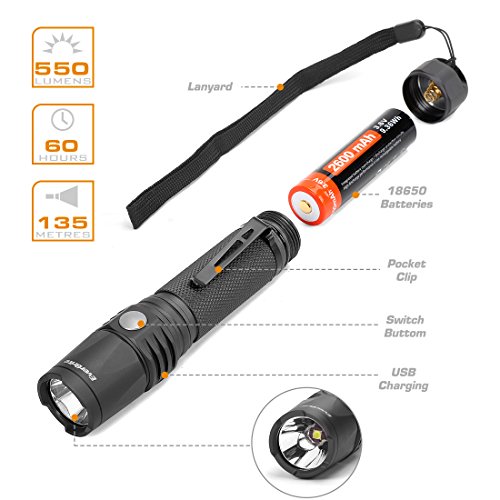 EverBrite Rechargeable LED Flashlight 550 Lumens CREE Bulb , IP68 Waterproof and Dust-free Aluminum Tactical Torch 7 Modes Super Bright for Camping, Hiking, 18650 Battery and USB Cable Included