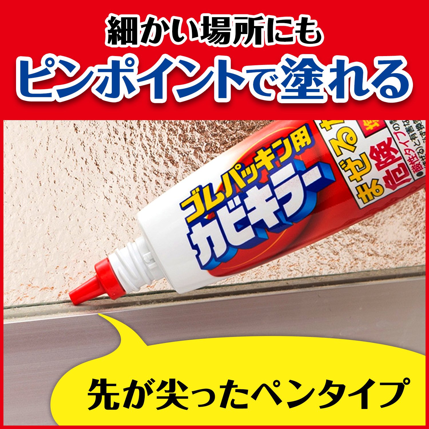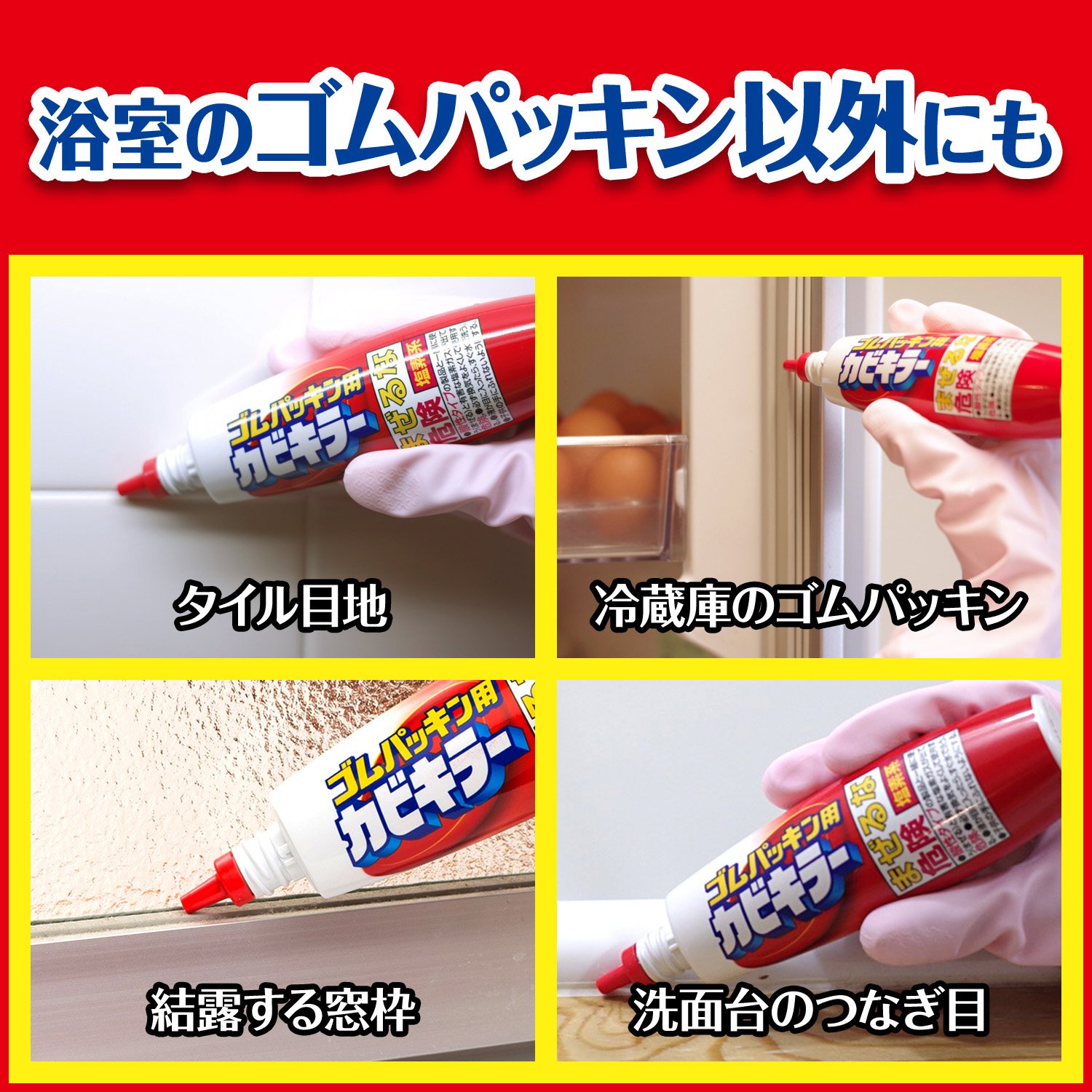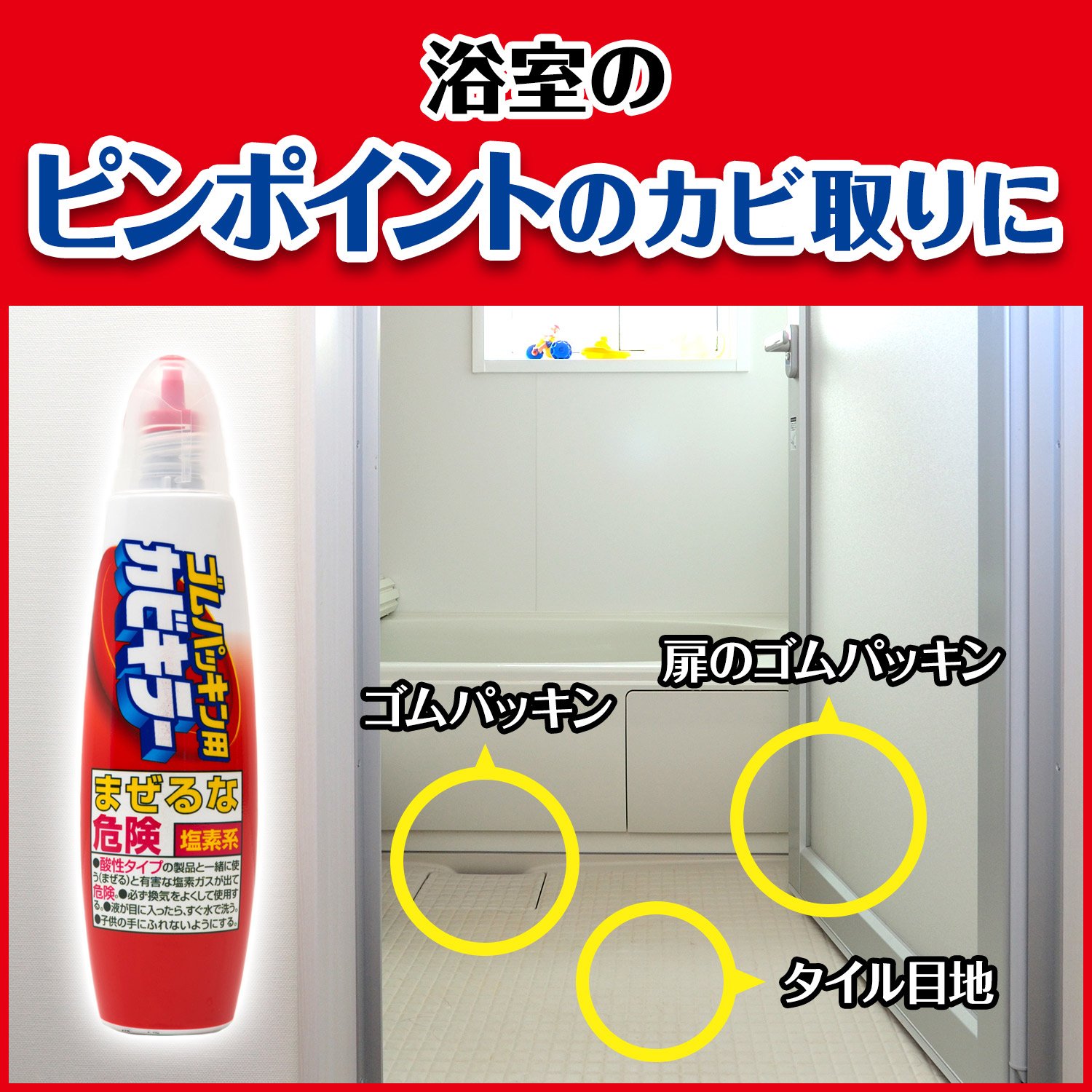 商品サイズ (幅×奥行×高さ) :104mm×108mm×206mm 原産国:日本 内容量:100g×3個 ゴムパッキン、コーキング等のカビ汚れを効果的に落とす。 ・浴室の扉、タイル目的、窓枠や洗面所、キッチンまわりのつなぎめ、結露をおこす部屋窓枠、冷蔵庫のゴムパッキンに使用できます。