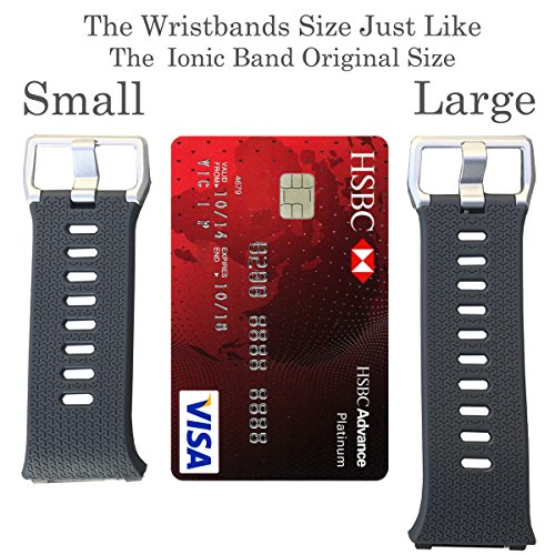 -. Feature : Fitbit Ionic Band: Replacement Bands for Fitbit Ionic is Made of a Flexible, Durable Elastomer TPE Material, It Feels Soft and Smooth, Better Than Silicone Rubber and TPU, BPA Free, Waterproof Non-Toxic and Tasteless, No Allergic to Human Skin / Classic Band is Compatible with Fitbit Ionic Smartwatch. Super Easy to Install and Adjust It to Right Size.Black,Slate Blue,Grey Colors Available Colors Available / Zinc Alloy Buckle for Added Security, Anti-Sweat Corrosion, Not Easy to Rust / Sport Wristbands Size: Large Size: Fits Wrists 6.7"-8.1" In Circumference. Small Size: Fits Wrists 5.5"-6.7" In Circumference. You Can Find the Right Size Bands According to Your Wrist Size / 45-Day Money Back Guarantee.1-Year Limited Warranty. You Have No Risk to Try