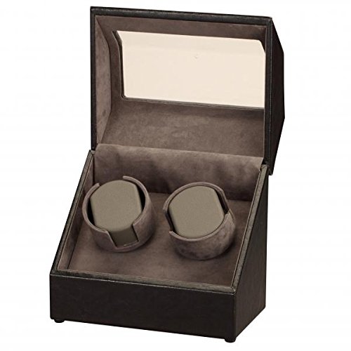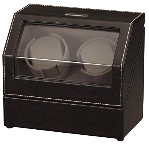 -. Title : Black Leather and Suede Dual Watch Winder w/ Display