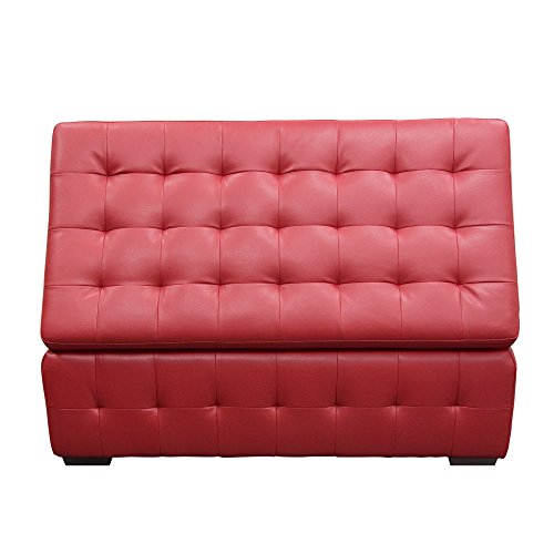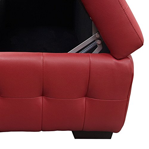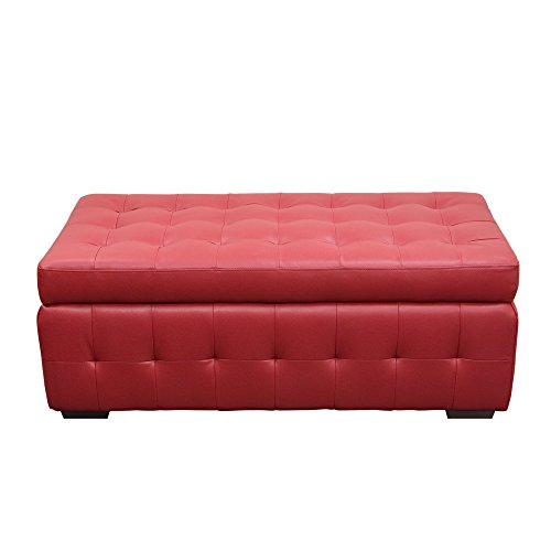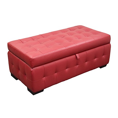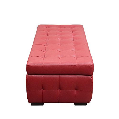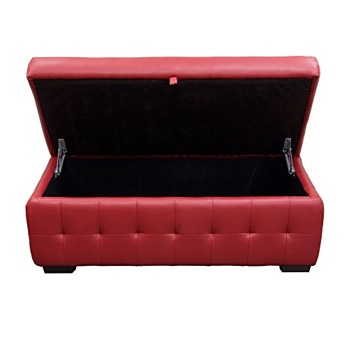 -. Feature : Bonded Leather Lift-Top Storage Trunk / Available in Three Colors / Provides Space Conscious Seating or Storage / Dual Tension Hinges for the Lid / Espresso Wood Foot